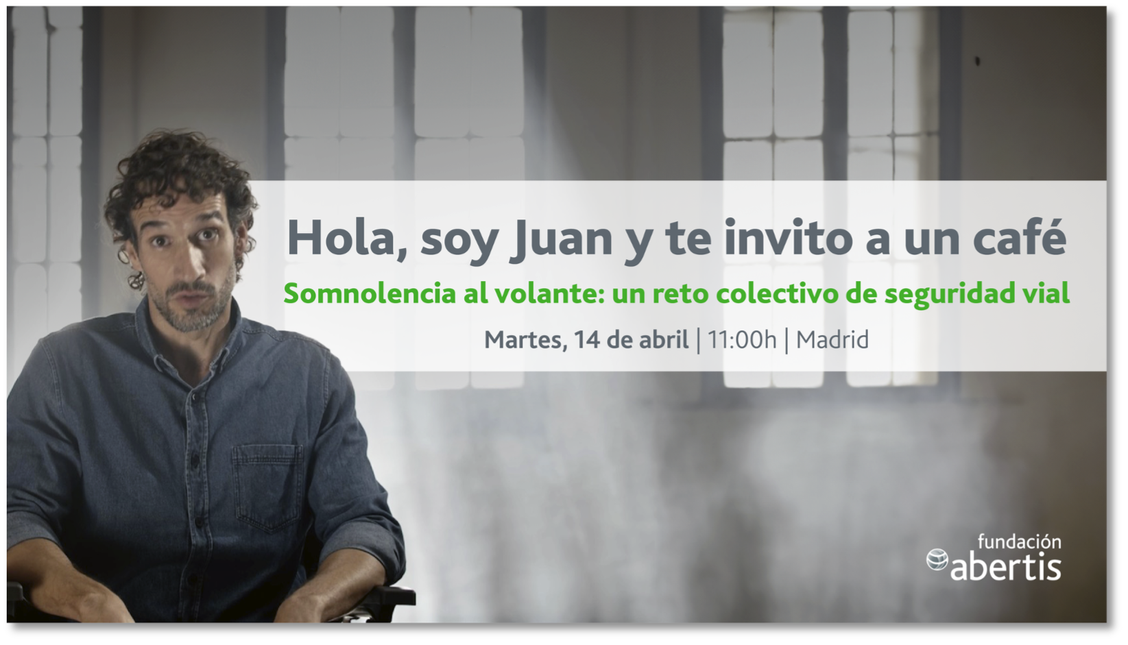 La Fundación Abertis ha presentado hoy su nueva campaña de seguridad vial “Hola, soy Juan y te invito a un café”, una iniciativa creada para concienciar sobre el impacto de la somnolencia al volante, una de las principales causas de siniestros en carretera.